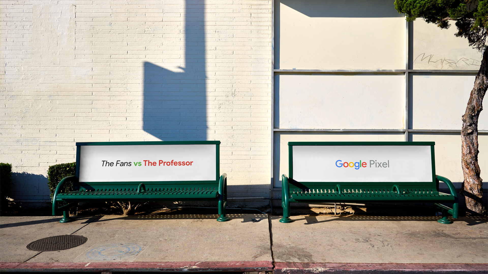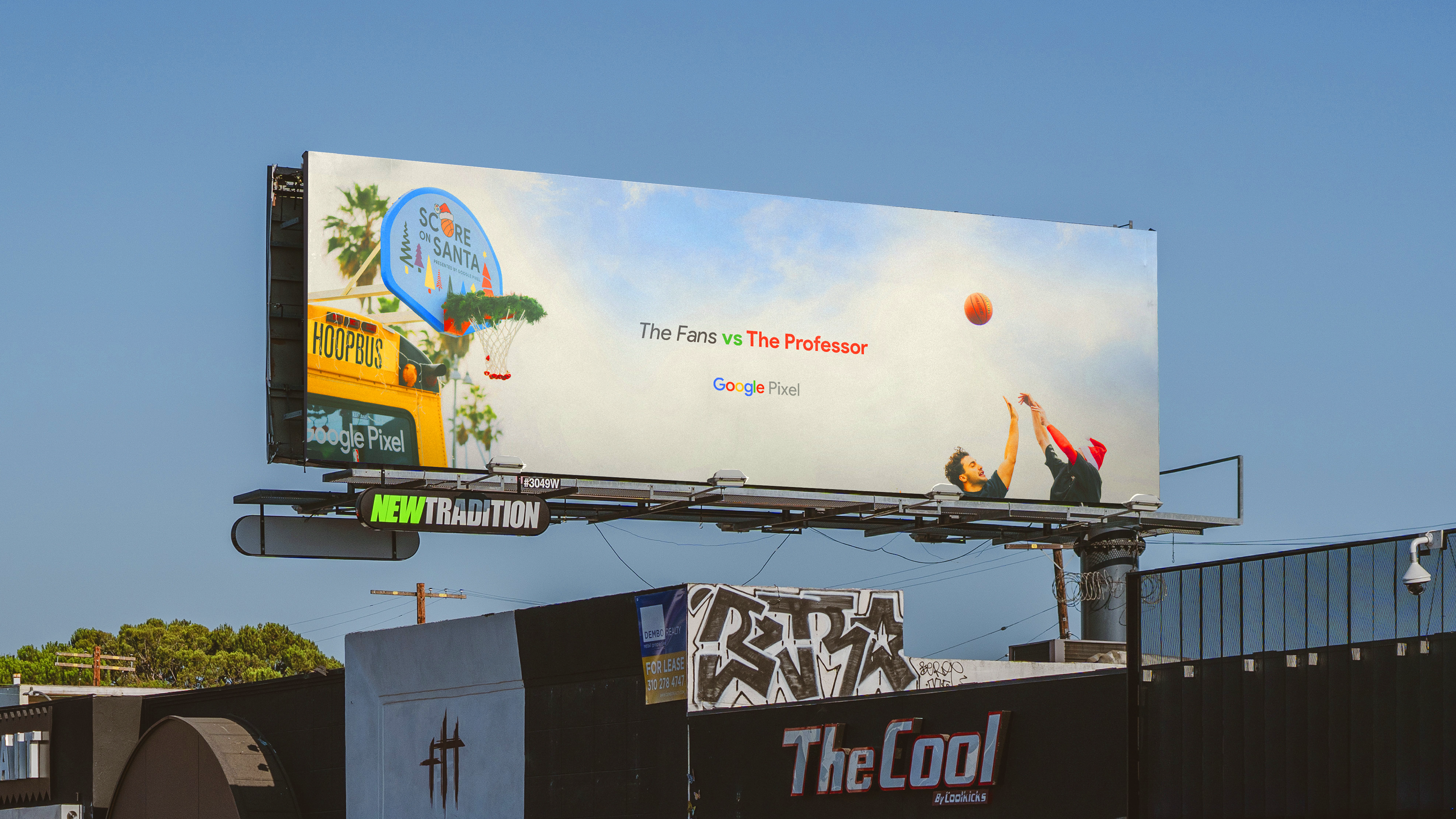 Advertising campaign for the launch of the new Google phone model at Venice Beach.